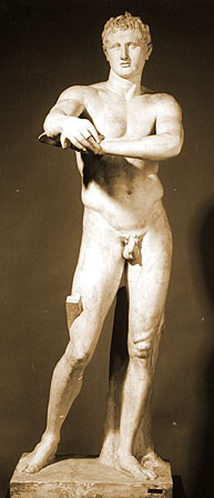 - is a version of the original bronze Apoxyomenos made by Lysippos in about 330 BC.